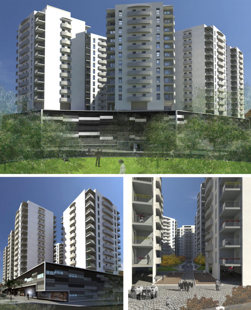 El complejo, situado en una zona de ampliación de la ciudad de Orán, se trata de un edificio híbrido con un gran zócalo comercial y la función residencial repartida en siete torres de doce plantas.