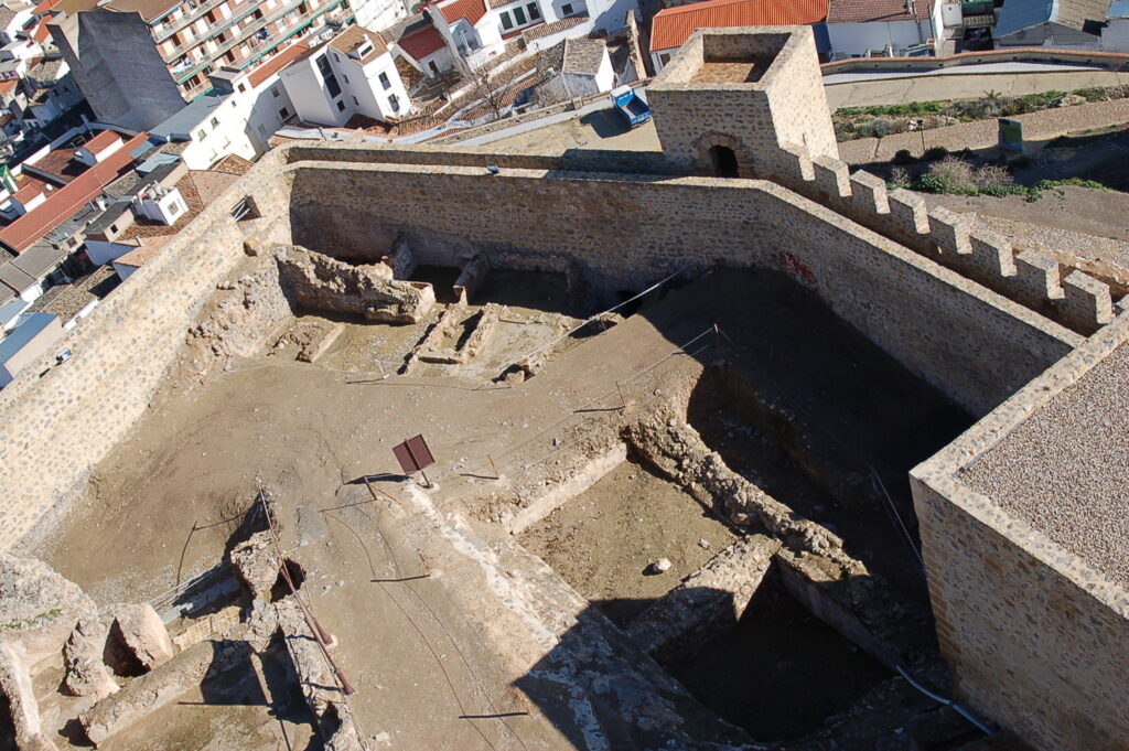 Différentes étapes d’interventions consécutives murs, remparts, des tours, des citernes et des vestiges archéologiques du château de alcaudete.